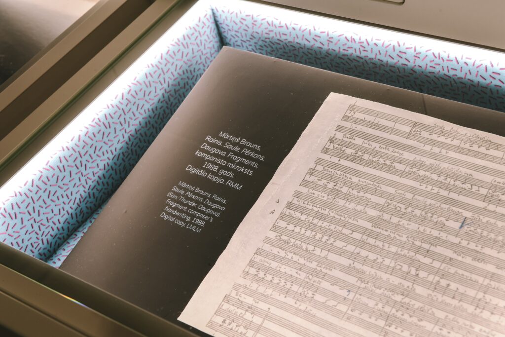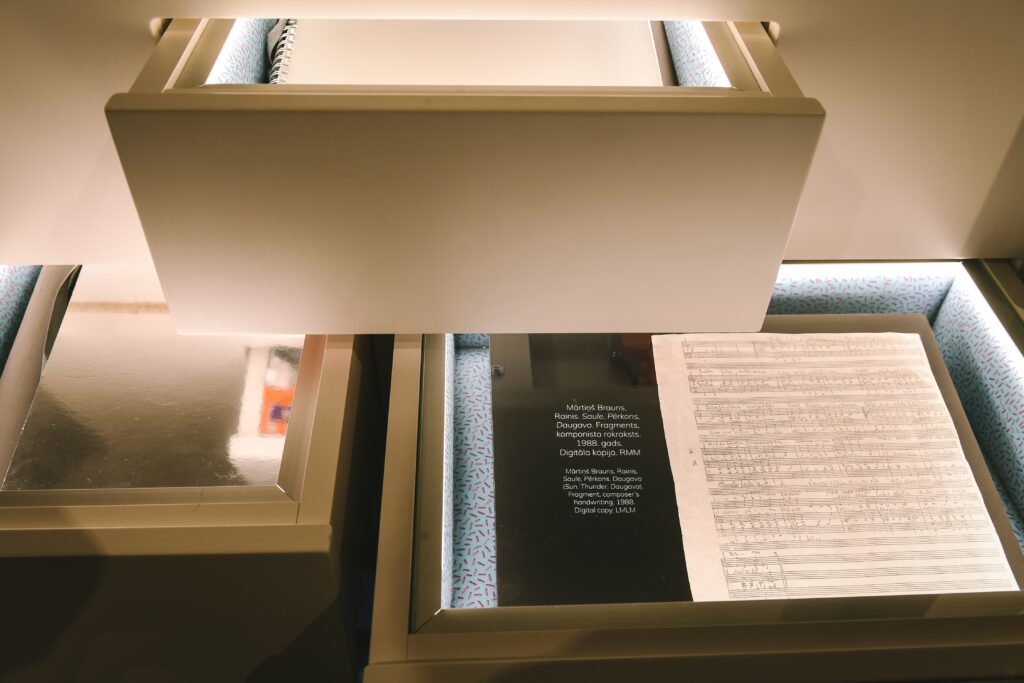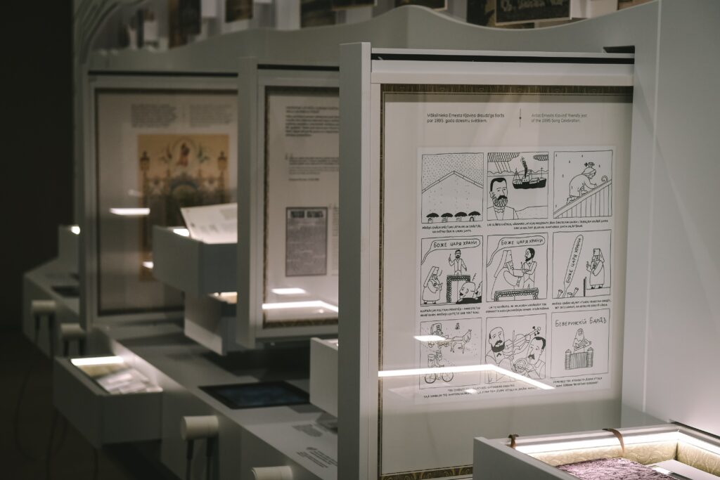 Dziesmusvētku telpa ir veltījums latviešu dziesmu un deju svētku tradīcijas dzimšanai, gaitai un turpinājumam. Tā stāsta par unikālo tradīciju – dziesmu un deju svētkiem, ko vēsturiski dēvējam visaptverošā vārdā – dziesmusvētki. Ekspozīcijas pieredzēšanai ir tikpat daudz iespēju, cik soļu svētku gājienā. Šeit gūtais informācijas, estētiskā baudījuma un emociju kopums ir nesaraujami saistīts ar katra paša šurp mēroto ceļu.