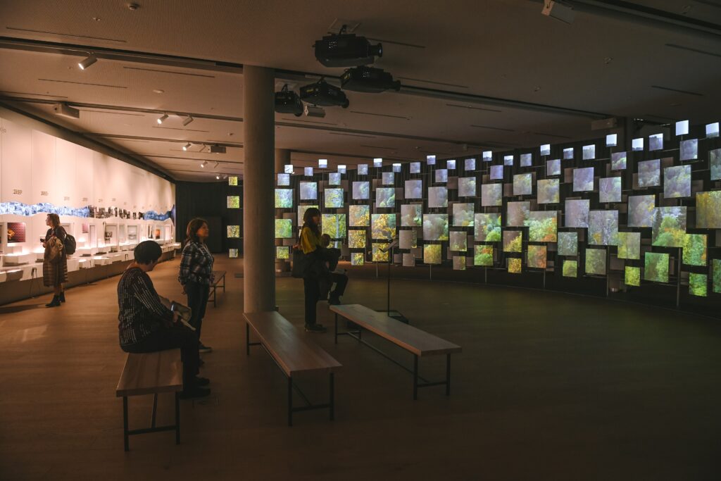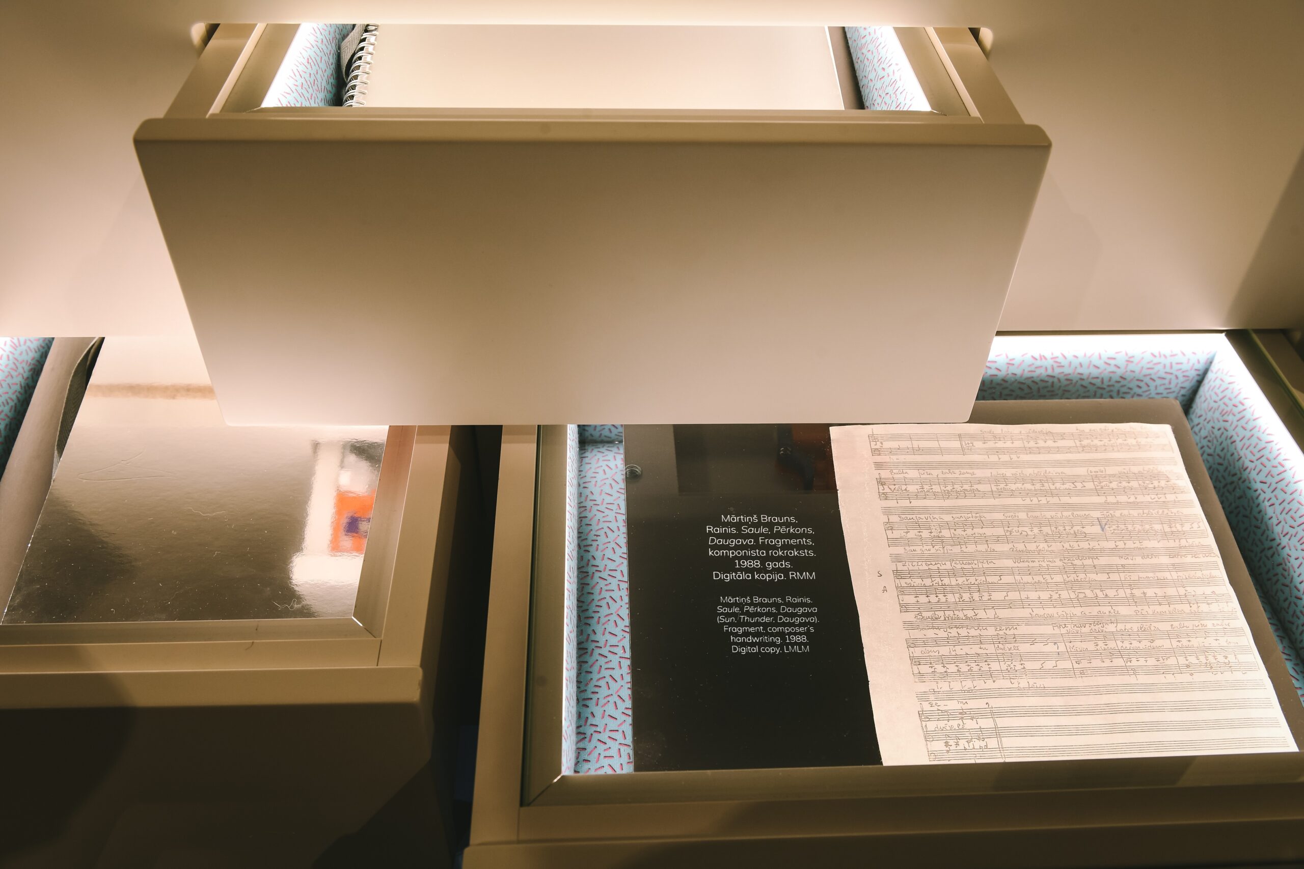 Multimediālā instalācija Lielākais koris pasaulē ir centrālā emocionālā pārdzīvojuma vieta, kurā 128 ekrānu vairogos, kas dizainiski atgādina Mežaparka estrādes skaņu paneļus, tiks izdzīvots dziesmusvētku stāsts, sākot no mazākās Latvijas dabas skaņas līdz lielākajai dziesmusvētku kopkora skaņai, kulminējot komponista Mārtiņa Brauna dziesmā “Saule, Pērkons, Daugava”.