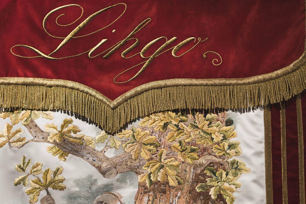 Līgo karogs ir latviešu dziesmu svētku tradīcijas nozīmīgākais simbols. Kopš pirmajiem svētkiem Līgo karogs tiek nests dziesmu svētku gājiena priekšgalā. Karoga oriģināls glabājas Rīgas Vēstures un kuģniecības muzejā, tas ir trausls un saudzējams, tādēļ smalkā roku darbā tapusi Līgo karoga kopija, kas ir redzama ekspozīcijā.